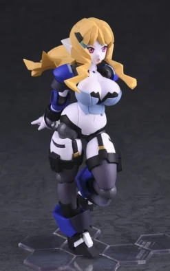 From Daibadi comes this highly articulated figure of Kelly from the visual novel Robot Neoanthropinae Polynian. She has a sleek look and curvy figure. Highlights include the vivid police blue paint of her outfit detailed with metallic gold, her long poseable ponytail, her two optional expressions, and the many included accessories of which one is handcuffs she can actually wear and break out off! Also comes with a police hat and two weapons. She measure 5.1” and stands on a cool transparent hex base.